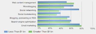 תופעה מעניינת נוספת: הארגונים הקטנים והבינוניים, הם אלה דווקא שמובילים באימוץ השימוש בכלי המדיה החברתית (64% מהם, לדוגמה, אימצו שימוש בטוויטר, לעומת 47% בארגונים הגדולים), אבל, הגדולים מנהלים אקטיבית יותר את התכנים באתרים שלהם מאשר הארגונים הקטנים והבינוניים.